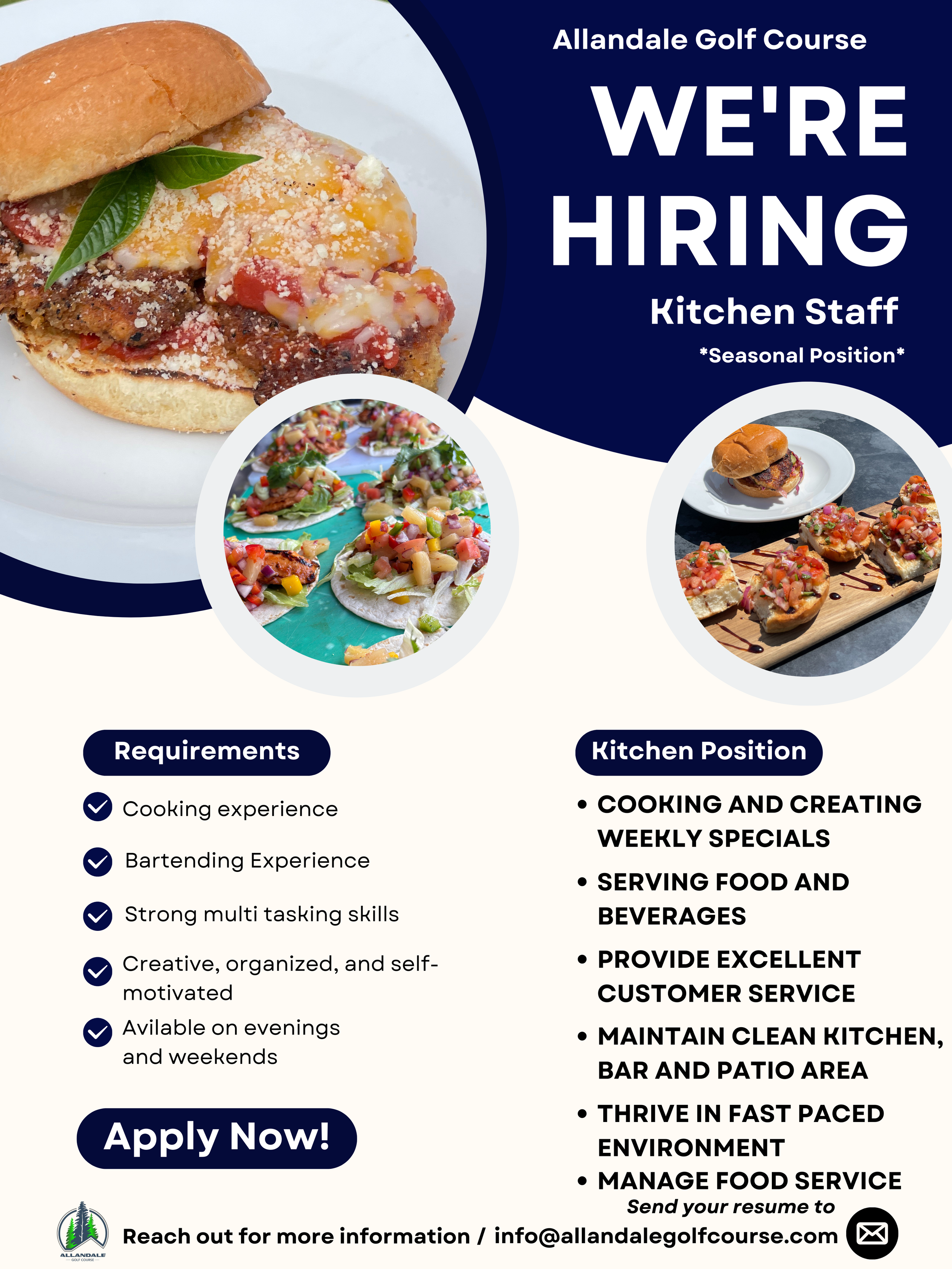 This position is perfect for someone who enjoys cooking, serving guests, and working in a busy, team-oriented environment.